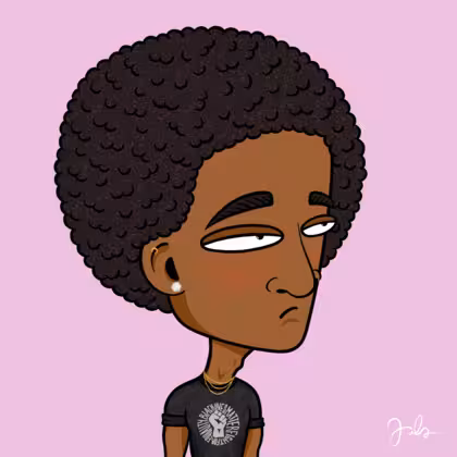 Collection Depressed Citizens Artist Juls Description ART. No team, no project, no future. Depressed Citizens is an urban & existential Art expression on Ordinals. In a parallel universe, "THEI" control us. DC unites against toxic society, encouraging critical thinking. 100% hand made collection that took Juls more than 6 months of daily work. Name Citizen#1904 Origin African descendant Gender Man Necklace Gold layered necklace Hat No Hat Mustache Beard No beard Glasses No Glasses Earrings Rook hoop Hair Style Afro Clothes BLM men T-shirt Tattoo No Tattoo Star Background Without stars
